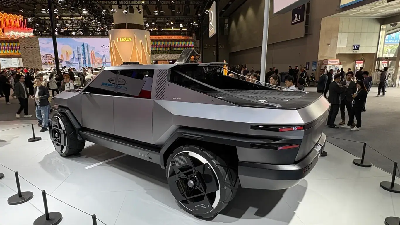 Компания GAC продемонстрировала концептуальный электрический пикап Pickup 01, визуально перекликающийся с Tesla Cybertruck. Модель получила угловатый и массивный дизайн, крупные колеса и высокий клиренс, что делает ее пригодной как для повседневной езды, так и для активного отдыха в горах или на строительных площадках. Визуально пикап выглядит брутально и футуристично, подчеркивая технологический характер будущей серийной модели.