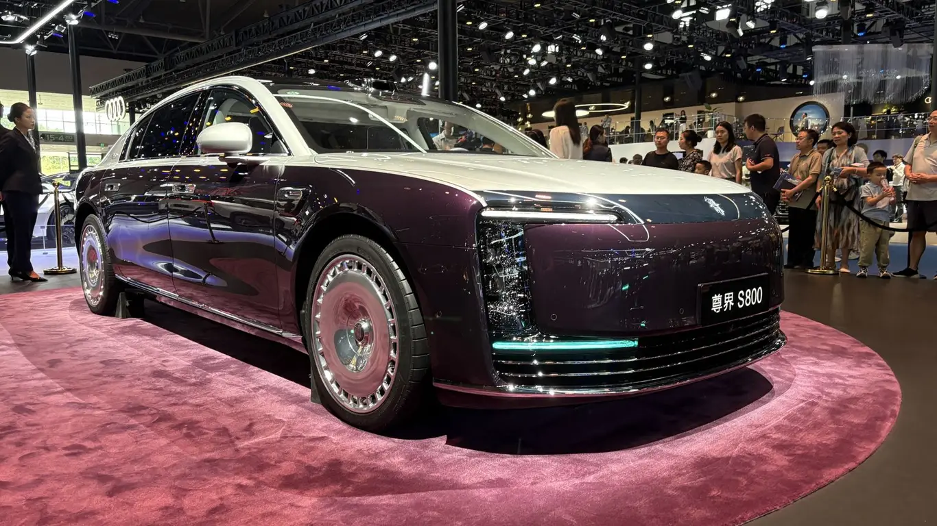 Maextro S800 выделяется внушительными габаритами и выразительным дизайном: длина почти 5,5 метра, крупная передняя часть, двухцветная окраска кузова, подсвечиваемые ручки и монолитные диски формируют солидный внешний облик. Внутри — салон высшей категории: натуральная кожа, дерево, металл и декоративный хрусталь. Под единым стеклом объединены три широких дисплея, создающие цифровую панель, а задние кресла предлагают функции массажа, подогрева и вентиляции, собственный подлокотник, панель управления и мини-холодильник.