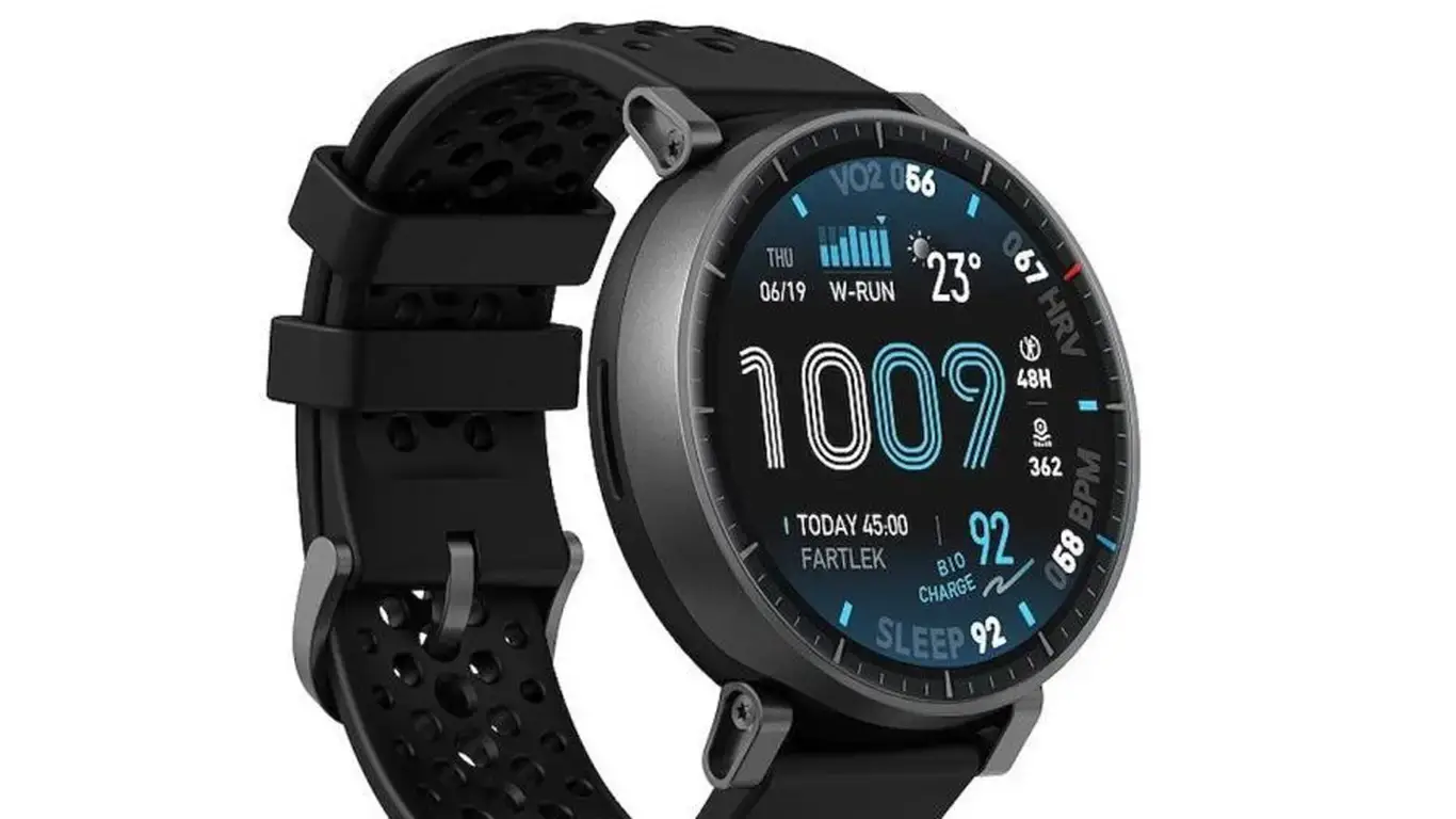 Судя по изображениям, модель получит круглый 1,5‑дюймовый OLED‑дисплей 480×480 с тонкими рамками и парой боковых кнопок. Из ожидаемых функций — Bluetooth 5.3, встроенный GPS, NFC и 4 ГБ памяти для музыки или данных приложений. Заявлена водозащита до 50 метров: дождь, бассейн и активные тренировки устройству нипочём.