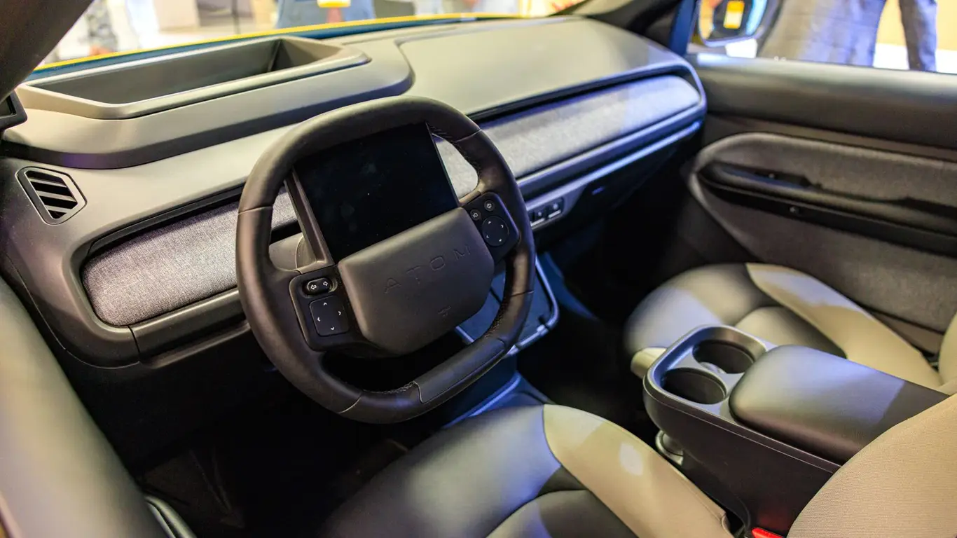 Концепция «Атома» чётко заточена под городскую эксплуатацию и сервисы такси. Часть функций вынесена в мобильное приложение — автомобиль можно открыть со смартфона, а посадка и компоновка салона рассчитаны на частые поездки и удобство пассажиров.
