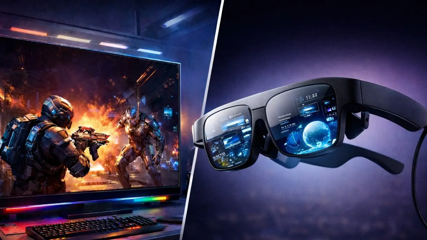 Почему такой вариант кажется логичным? Концепция BFGD всегда была про «большую картинку» с игровым откликом, который ближе к монитору, чем к телевизору. Виртуальный экран в очках даёт похожий эффект: большой формат появляется прямо перед глазами, но не занимает физического пространства и не требует перестраивать рабочее место.