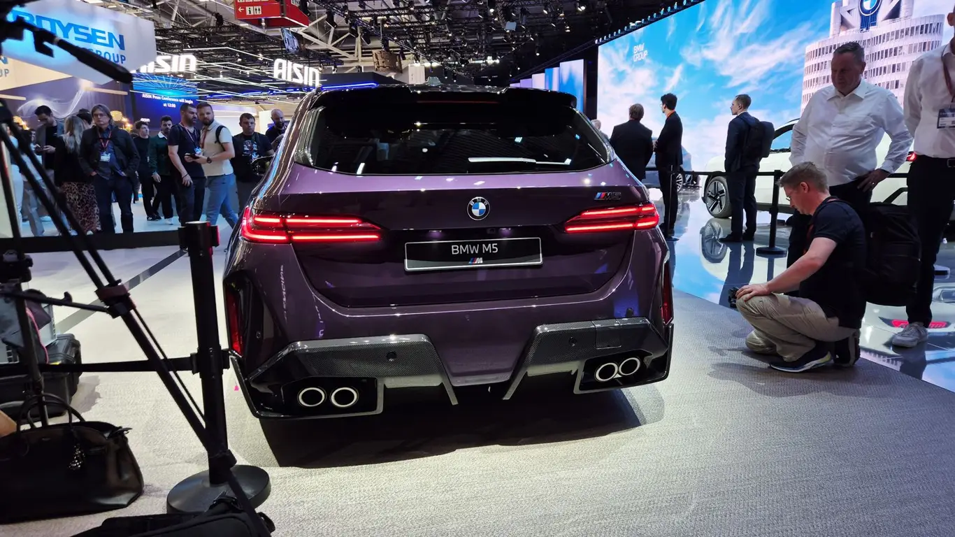 Обновлённый BMW M5 Touring, который должен появиться в середине 2027 года, продолжает проходить дорожные испытания, и недавно прототип был замечен в Германии, что позволило зафиксировать как внешний вид, так и интерьер модели. В салоне акцент сделан на технологичности, включая панорамную архитектуру передней панели с новым ПО iDrive X и крупным сенсорным экраном, дополненным спортивным рулём и переработанным центральным тоннелем, при этом передние кресла обещают усиленную боковую поддержку в премиальном, а не гоночном стиле. Об этом сообщает издание tarantas.news.Внешне автомобиль демонстрирует более агрессивный передний бампер с крупными воздухозаборниками и узкой решёткой радиатора, а также оснащён карбон-керамическими тормозами, 20-дюймовыми дисками спереди и 21-дюймовыми сзади с широкими покрышками. Задняя часть выделяется четырьмя патрубками выхлопа и обновлённой OLED-графикой фонарей, подчёркивая спортивный характер универсала.Технически модель останется подключаемым гибридом с 4,4-литровым битурбированным V8, адаптированным под требования Euro 7, что обеспечит суммарную мощность около 727 л.с. и электрический запас хода примерно в 100 км. Инженеры также переработают настройки подвески, рулевого управления, восьмиступенчатого автомата и системы M xDrive, что позволит сохранить экстремальную мощность при большей универсальности и соответствии новым экологическим нормам.